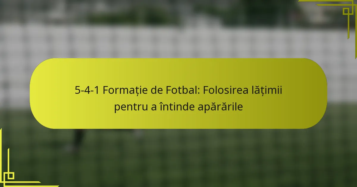 Formația de fotbal 5-4-1 este o configurație tactică care pune accent pe soliditatea defensivă, în timp ce utilizează lățimea pentru a exploata apărarea adversă. Aceasta include cinci fundași, patru mijlocași și un singur atacant, creând o structură compactă care poate trece eficient între apărare și atac.