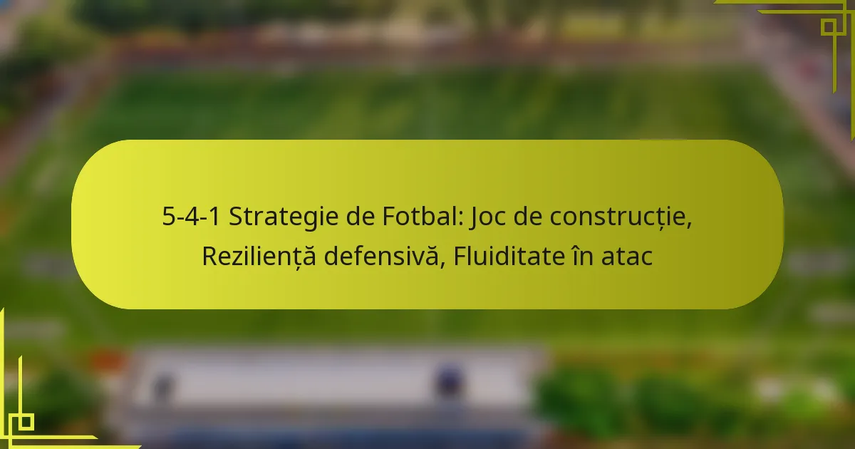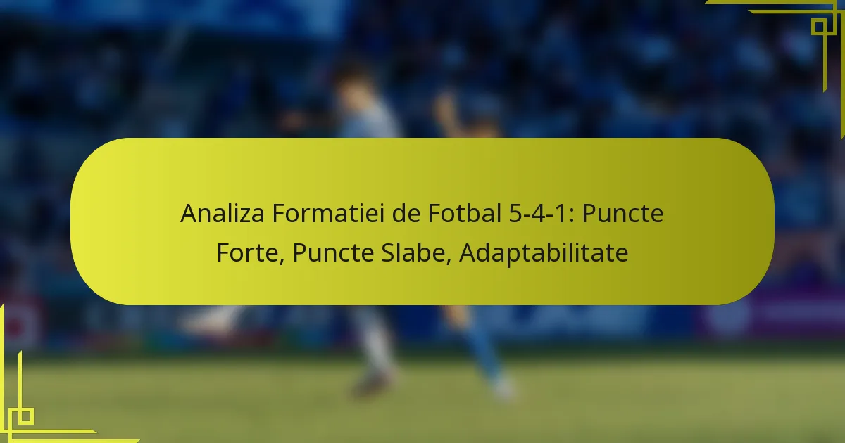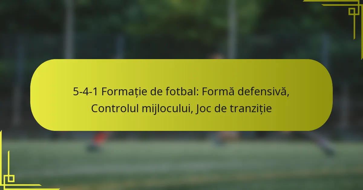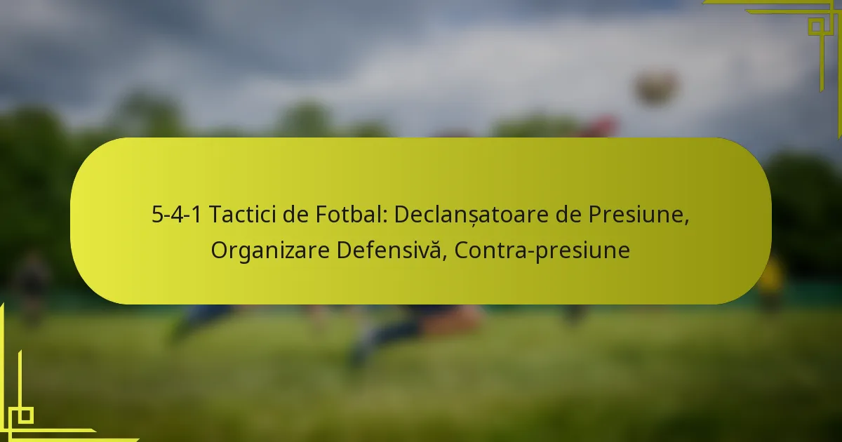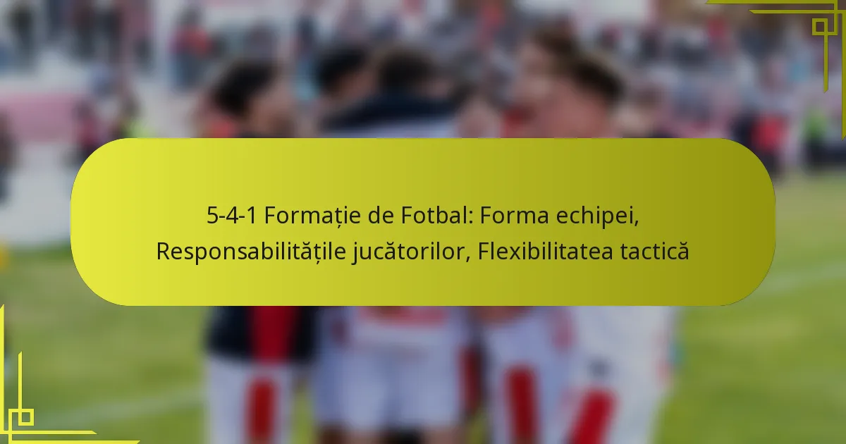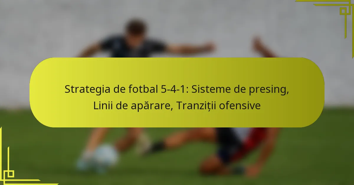 Formația de fotbal 5-4-1 este o abordare tactică care prioritizează forța defensivă, facilitând în același timp tranziții ofensive rapide. Cu cinci fundași și patru mijlocași care sprijină un singur atacant, această configurație este concepută pentru a absorbi presiunea și a lansa contraatacuri eficiente. Sistemele de presing din această formație se concentrează pe recâștigarea posesiei prin mișcări coordonate ale jucătorilor, în timp ce stabilirea unor linii defensive solide este crucială pentru menținerea structurii și împiedicarea avansurilor adversarilor.