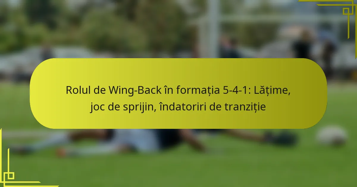 În formația 5-4-1, fundașii laterali joacă un rol esențial în echilibrarea responsabilităților defensive cu suportul ofensiv. Sarcinile lor implică menținerea unei forme defensive solide în timp ce execută alergări suprapuse pentru a crea lățime și a iniția contraatacuri. Prin stăpânirea timpului și a poziționării, fundașii laterali pot îmbunătăți potențialul ofensiv al echipei fără a compromite stabilitatea defensivă.