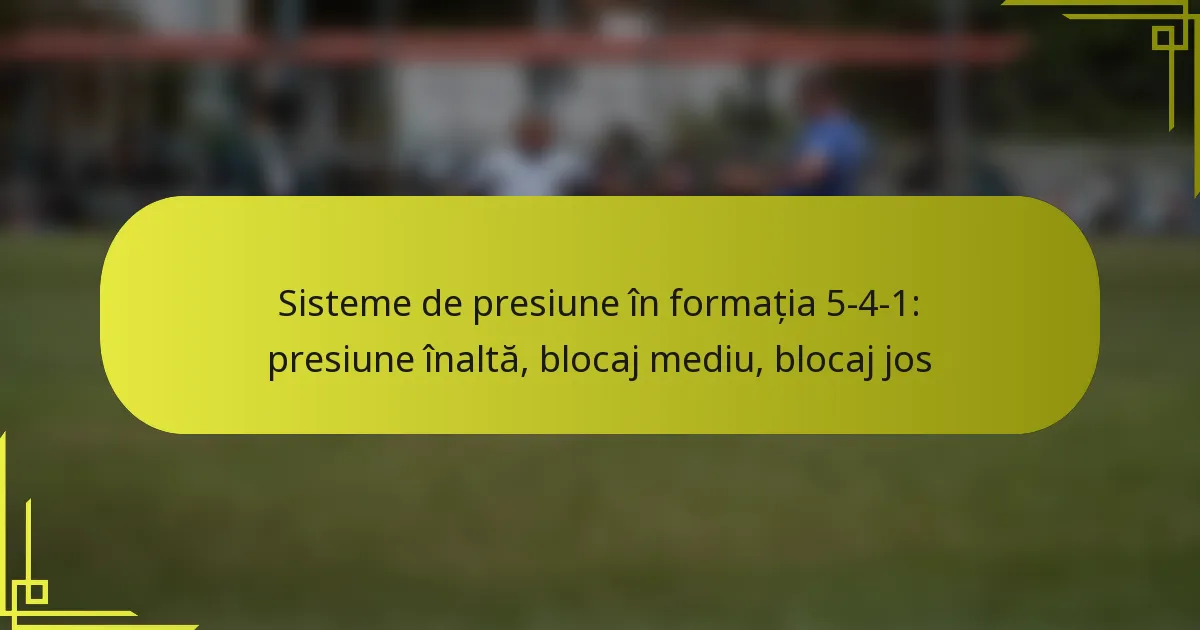 Formația 5-4-1 este un sistem defensiv de fotbal care pune accent pe stabilitate, permițând în același timp contraatacuri rapide. În cadrul acestui sistem, sistemele de presing joacă un rol crucial, cu strategii precum presingul înalt, blocajul mediu și blocajul jos, adaptate pentru a recâștiga posesia și a perturba fluxul adversarului. Fiecare abordare de presing variază în intensitate și poziționare, permițând echipelor să se adapteze eficient la diferite situații de meci.